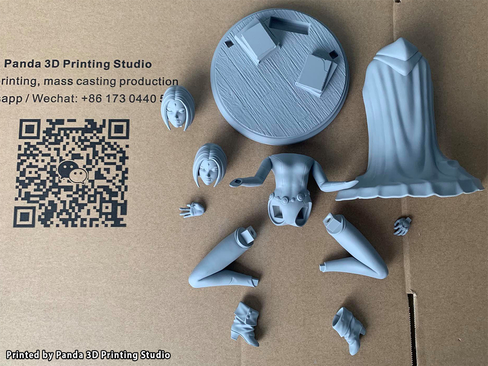 This statue is composed of 13 parts, which include 2 switch-out heads, and all the files are already scaled to 1:6 scale, assuming the character is around 1.65m/5'4''. Printed at that scale the dimensions of the final assembled piece will be around 150mmx150mmx200mm.